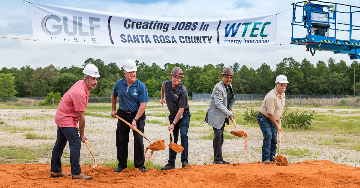 Santa Rosa County officials today broke ground on a new facility that will be built on eight acres in the Santa Rosa Industrial Park. This new facility will serve as home to Gulf Cable/WTEC.